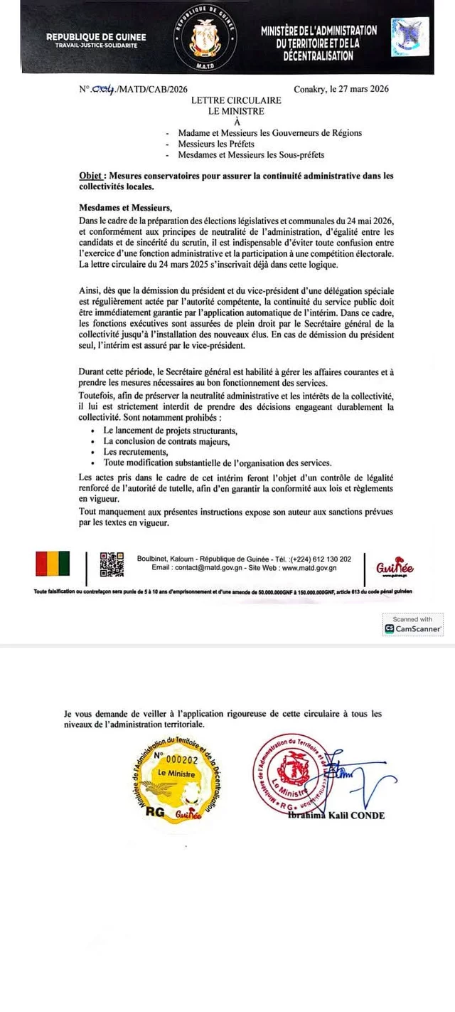 Face à cette situation, le MATD, à travers une lettre circulaire en date du 27 mars 2026, a instruit les secrétaires généraux d’assurer la gestion des affaires courantes des collectivités concernées.